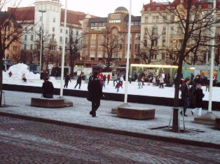 Luistelurata Hesan keskustassa ja katuesiintyjä: