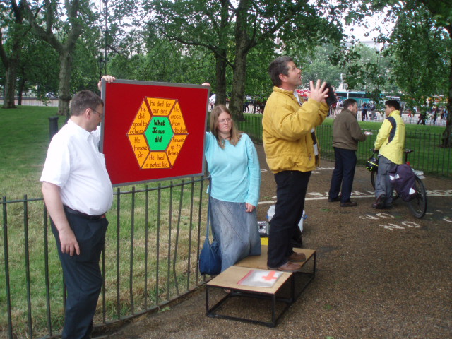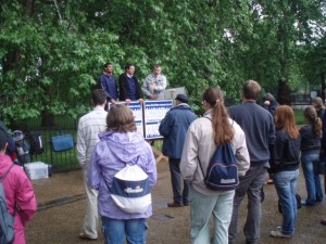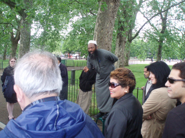 After it had stopped raining I left for Hyde Park with Jack Valero. On the way we saw a chapel in memory of the English martyrs where benedictine nuns have perpetual adoration. We visited Speakers’ Corner which runs on Sundays almost all day – I was to return there twice more during the day. Here’s a collection of the different kinds of people speaking or preaching there…