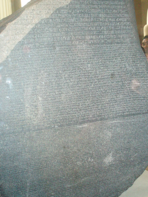 I also visited the British Museum where I saw the famous Rosetta Stone which allowed scholars to decipher the Egyptian hieroglyphs for the first time because of the Greek text in it. It was quite an accomplishment. There was an explanation next to the stone that the hieroglyphs actually marked both sounds and concepts, for example the word ”cat” first has 3 signs that represent sounds and then at the end a picture of a cat representing the whole word/concept.