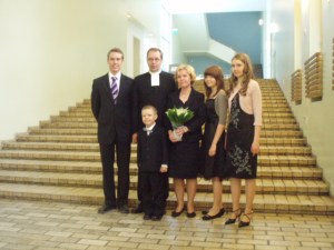 Yllä on Tornion pastori Juhani Holman perhe Juhanin väitöstilaisuuden jälkeen. Hän on nyt teologian tohtori. Juhani oli se, joka opasti meitä Lapin-matkalla viime syksynä. Matkakertomus löytyy arkistoista.