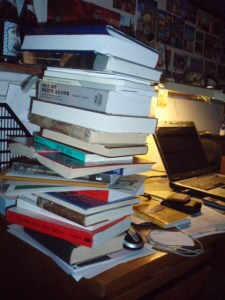 Tietokoneen ääreltä kirjapinon vierestä, 23:42 (tänään lopetin ”ajoissa” kun sain kolmannen neljästä pääluvusta loppuun!:)), näihin sanoihin, näihin tunnelmiin… yours truly