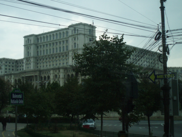 Well we did do some sightseeing as well! Here is the second biggest building in the world (after the Pentagon), Ciaucescu’s palace with like a thousand rooms and tons of marble. Notice in front the mess with the wires or whatever the electric lines are called that the Romanians aren’t able to hide or keep neat for some reason. We saw 4 rooms in the palace + the toilets which were also made of marble.