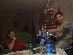 We all made it ”home” to the Dymalski family safely, it was my third time there already. It was my first time in Poland on the Christmas season though. The first night I tried to sleep on the sofa next to the Christmas tree but it didn’t quite work. Alla kuvassa Darek Dymalski, jonka häissä olin ja joka oli meilläkin aikoinaan Martansa kanssa. Darekin vanhemmilla oli kotoinen ja jouluinen tunnelma. U Dymalskich i u Chróstów w Swarzedzu byla fajna swiateczna atmosfera z choinkami itp. Czulismy sie bardzo dobrze.